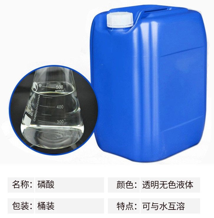 熔點(diǎn)42.35℃,比重1.70,高沸點(diǎn)酸,可與水以任意比互溶,沸點(diǎn)213℃時(失去1/2水),則生成焦磷酸。加熱至300℃時變成偏磷酸。相對密Chemicalbook度181.834。易溶于水,溶于乙醇。磷酸是一種常見的無機(jī)酸,是中強(qiáng)酸。其酸性較硫酸、鹽酸和硝酸等強(qiáng)酸弱,但較醋酸、硼酸、碳酸等弱酸強(qiáng)。磷酸與碳酸鈉反應(yīng)時在不同的pH下,可生成不同的酸式鹽。能刺激皮膚引起發(fā)炎,破壞肌體組織。濃磷酸在瓷器中加熱時有侵蝕作用。有吸濕性,密封保存。磷酸主要應(yīng)用領(lǐng)域如下:金屬表面鋼管磷化處理,配制電解拋光液和化學(xué)拋光液;鋁制品的拋光;制造各種磷酸鹽、飼料級磷酸氫鈣、酸式磷酸錳、焦磷酸鉀;醫(yī)藥工業(yè)用于制造甘油磷酸鈉、磷酸鐵,制造青霉素時調(diào)節(jié)酸堿度;用于制造磷酸鋅作為牙科補(bǔ)牙時粘合劑;塑料用于酚醛樹脂縮合的催化劑Chemicalbook;染料及中間體生產(chǎn)用的干燥劑;印刷用于配制揩去膠印彩印版上污點(diǎn)的清洗劑;火柴用于浸漬火柴梗,能使燃燒過的火柴梗不成灰而成炭狀,使用時較為安全;冶金用于生產(chǎn)耐火泥,提高煉鋼爐壽命;橡膠用于漿料的凝固劑及生產(chǎn)無機(jī)粘結(jié)劑的原料;涂料用于金屬防銹漆;食品工業(yè)用作酸性調(diào)味劑。